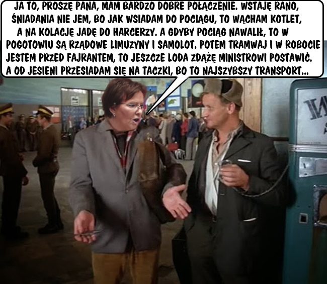 Ewa Kopacz - niczym żubr z reklamy (Kolej Na Żubra) - poszła w Polskę. I co? Okazuje się, że mamy bardzo zaradną panią premier. Potrafi wsiąść do pociągu, przejechać kilka stacji, zamówić coś do jedzenia w „Warsie”, a być może jest nawet w stanie samodzielnie kupić bilet.